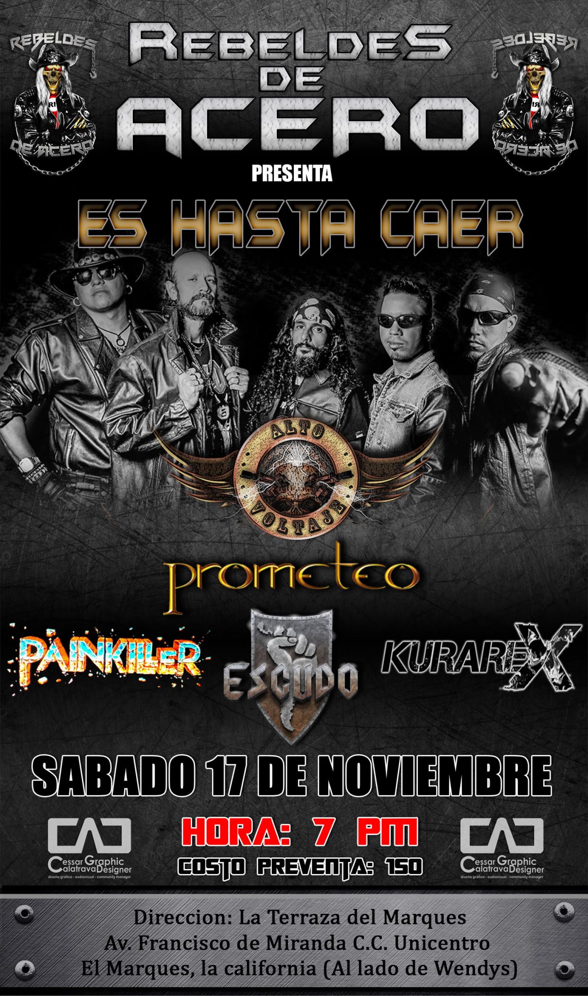 “…Rocker: El evento denominado «Es hasta Caer» será una noche memorable en la historia rock de la ciudad capital, pues tendrá en un solo escenario, a lo más granado de la escena del metal y el Rock clásico interpretarán lo mejor de ellos. Llevaremos un repertorio muy electrizante repasando nuestros discos con un set list muy equilibrado entre lo mejor del DURO RUDO Y SUCIO; ROCK HASTA LA MUERTE y por supuesto el lanzamiento de nuestro nuevo álbum próximo a editar INCOMBUSTIBLE. Lo energía que gira alrededor de este repertorio es potente, dura y melódica por lo que prometemos dar un inolvidable show”.