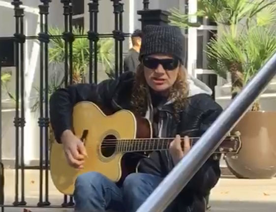 Aquí puedes ver a Dave Mustaine de Megadeth tocar frente a un hotel en Argentina