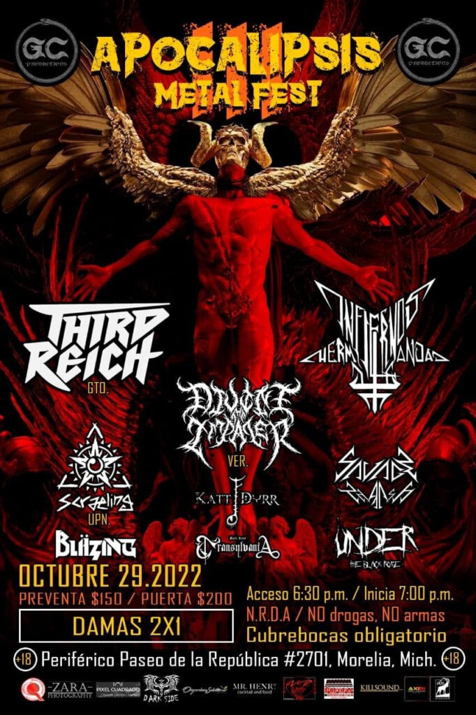 El Apocalipsis Metal Fest III llega con un brutal cartel apoyando la escena del metal de Morelia, Michoacán, México.