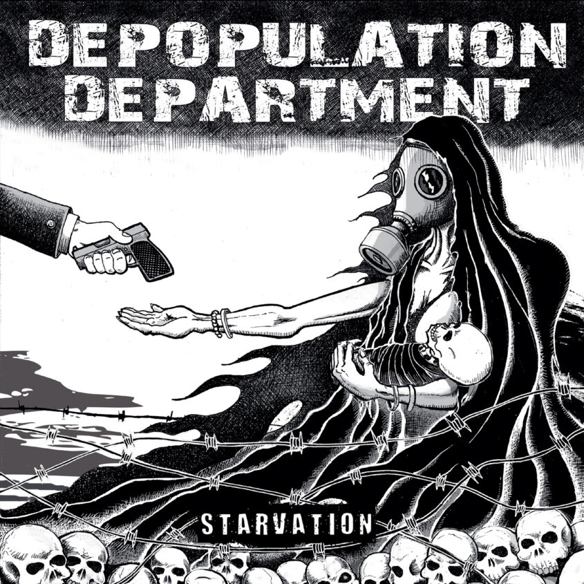 El mini-LP “Starvation” de Depopulation Department viene acompañado de letras comprometidas, denunciando todo aquello que no nos gusta y con la seña de identidad que caracteriza a la banda de Crust Punk, mezclando voces femeninas y masculinas.