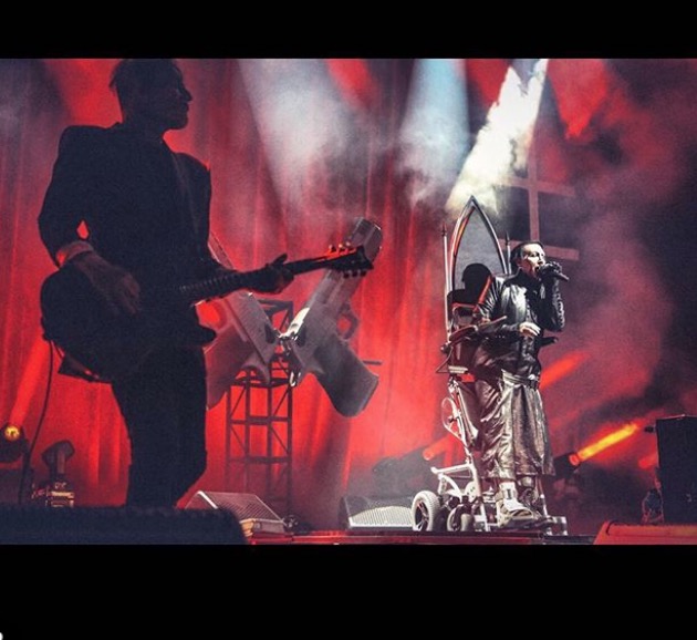 El Reverendo Marilyn Manson regresó a los escenarios el pasado fin de semana 5 de noviembre, tras el accidente ocurrido, esta vez la presentación fue en California, en el Knotfest, donde hizo su regreso con la pierna aún inmovilizada y en una especie de silla de ruedas eléctrica, como siempre no puede faltar la polémica !