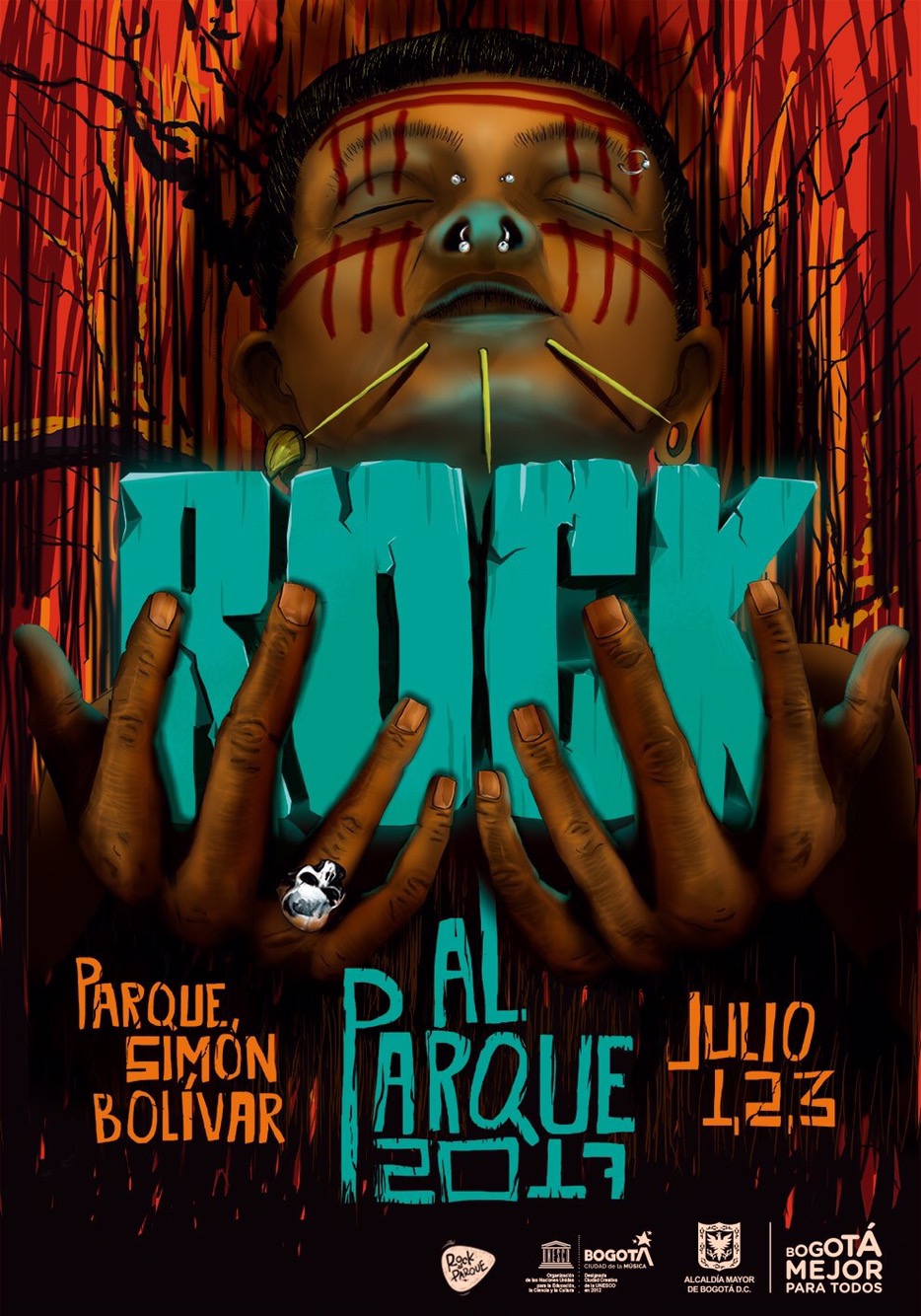 La imagen de Rock al Parque 2017 está inspirada en los diferentes orígenes culturales presentes en el festival desde sus inicios, e incluye elementos simbólicos del rock como el anillo de calavera o las perforaciones corporales, haciendo alusión no sólo a las raíces del evento sino a su comunión con la nueva cultura de festivales y las nuevas generaciones de asistentes. “La imagen oficial del Festival Rock al Parque que hoy presentamos, también refleja los ejes de este en 2017: celebrar, conservar y descubrir”, afirma Juliana Restrepo, Directora del Idartes.