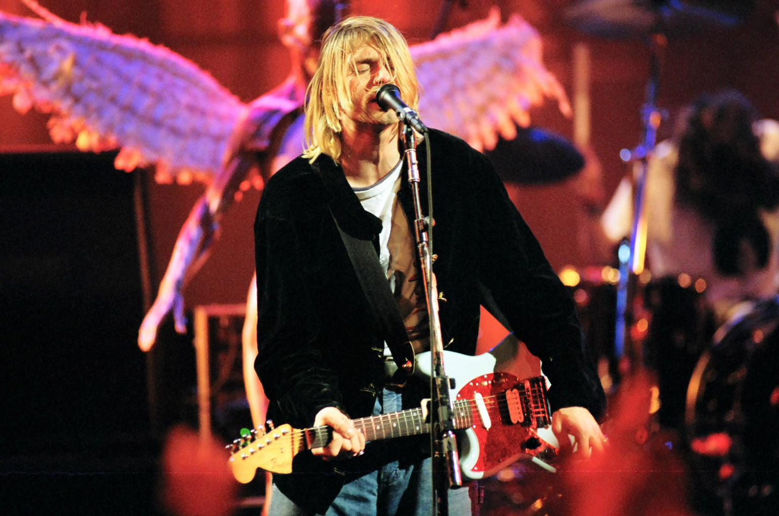 Kurt Cobain of Nirvana during MTV Live and Loud: Nirvana Performs Live – December 1993 at Pier 28 in Seattle, Washington, United States. (Photo by Jeff Kravitz/FilmMagic, Inc)