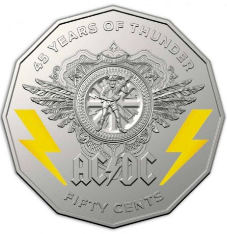La Royal Australian Mint (agencia que proporciona la moneda al país) junto a  Questacon (centro nacional de ciencia y tecnología) se han asociado para realizar esta edición, usando un rayo artificial. Quetsacon produce rayos mediante Tesla Coil y realizaron este experimento en el que diez monedas de 50 céntimos, en las que figura el logo del alto voltaje y diseños de AC/DC, serán impactadas con rayos de 3.500.000 voltios.