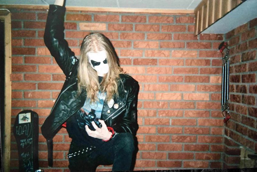 Para este punto la banda Mayhem estaba integrada por Euronymous en la guitarra, Necrobutcher en el bajo y Hellhammer en la batería.
