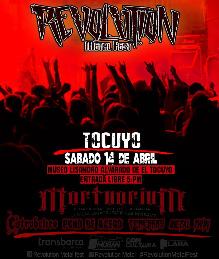 El 3er Revolution Metal Fest llegara el 14 de Abril a el Museo Lisandro Alvarado de la ciudad del Tocuyo, con la banda en Gira: Mortuorium y con las agrupacions invitadas: Tenebras, Puño de Acero, Metal Twin y Estrobelico banda anfitriona de la entidad.