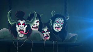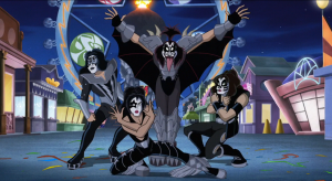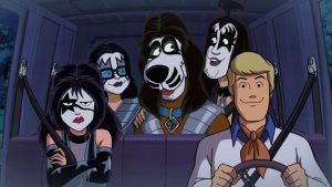 Los miembros de Kiss, Gene Simmons, Paul Stanley, Eric Singer y Tommy Thayer interpretan a sus propios personajes en la animación Scooby-Doo! y Kiss «El misterio del Rock and Roll»