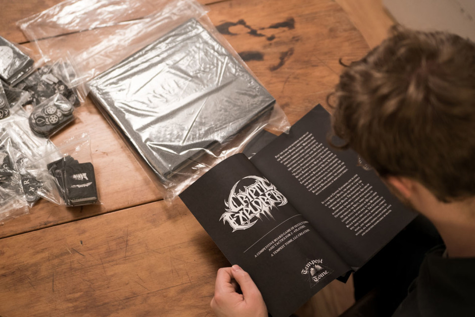Juego de Mesa + Black Metal= Cryptic Explorers, esta basado en ciencia ficción, juego de terror, competitivo, y con bases en la música Metal.